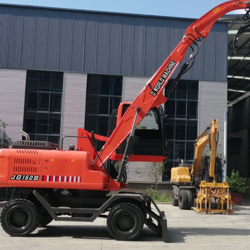 Jinggong Excavator Highlights JG150S Four-Claw Wheel Excavator for Material Handling Efficiency