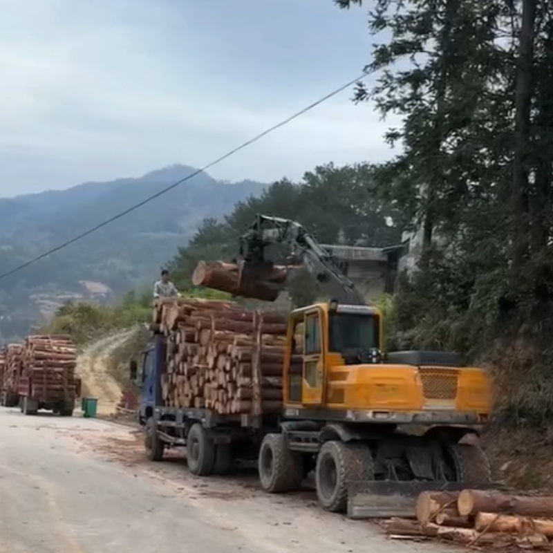 In the footage, this JG90Z log grapple excavator stands beside a mountain of logs. Equipped with a dedicated log grapple, it acts like a powerful steel hand, flexible and strong. The operator precisely controls this "giant", with the grapple arm easily reaching into the log pile and firmly grasping several thick logs. The entire process is smooth and swift, without any unnecessary delays. Then, the excavator gracefully rotates and accurately and steadily places the logs onto the waiting large transport truck. Each action of grasping, lifting, rotating, and unloading is executed seamlessly, showcasing remarkable coordination and efficiency.