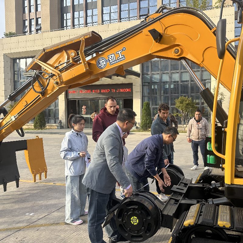During the visit, the delegation members learned in detail about the entire process of excavators from component assembly to final testing, and showed great interest in the company's intelligent production lines. During the on-site interaction, the customers actively asked about application cases of the products in mining and construction projects, and the Jinggong technical team answered one by one and shared the company's practical concepts in sustainable development. This visit was not only an opportunity for business cooperation but also a bridge for cultural exchange, strengthening Jinggong's brand influence in the global market.